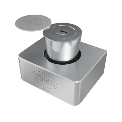 Candado de Alta seguridad para cortina metálica enrollables, fabricado en latón macizo. Accionamiento superior. Extracción de llave en una posición. Vástago de acero inoxidable extraíble y 3 llaves multipunto anti ganzúa.