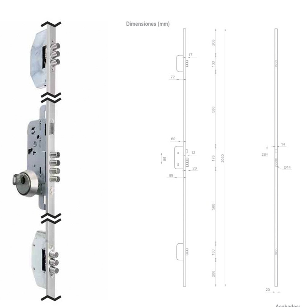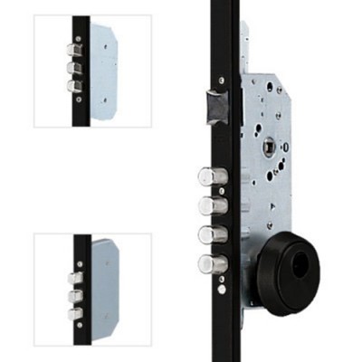 Cerradura de Alta Seguridad de 3 puntos de cierre, ideales para puertas de Madera. Incluye protector Anti Taladro, cilindro de seguridad con 5 llaves multipunto y manilla interior colonial acabado negro.