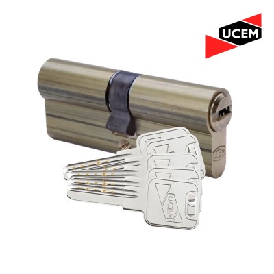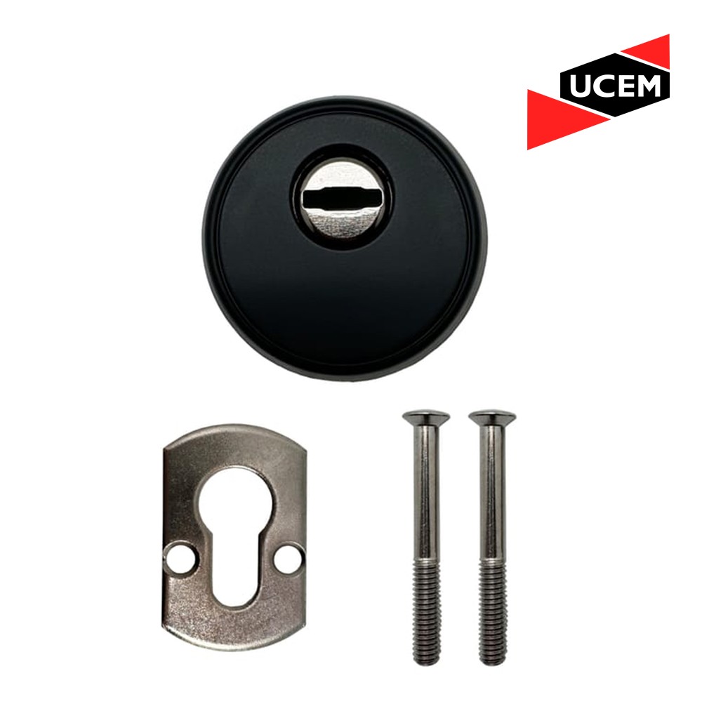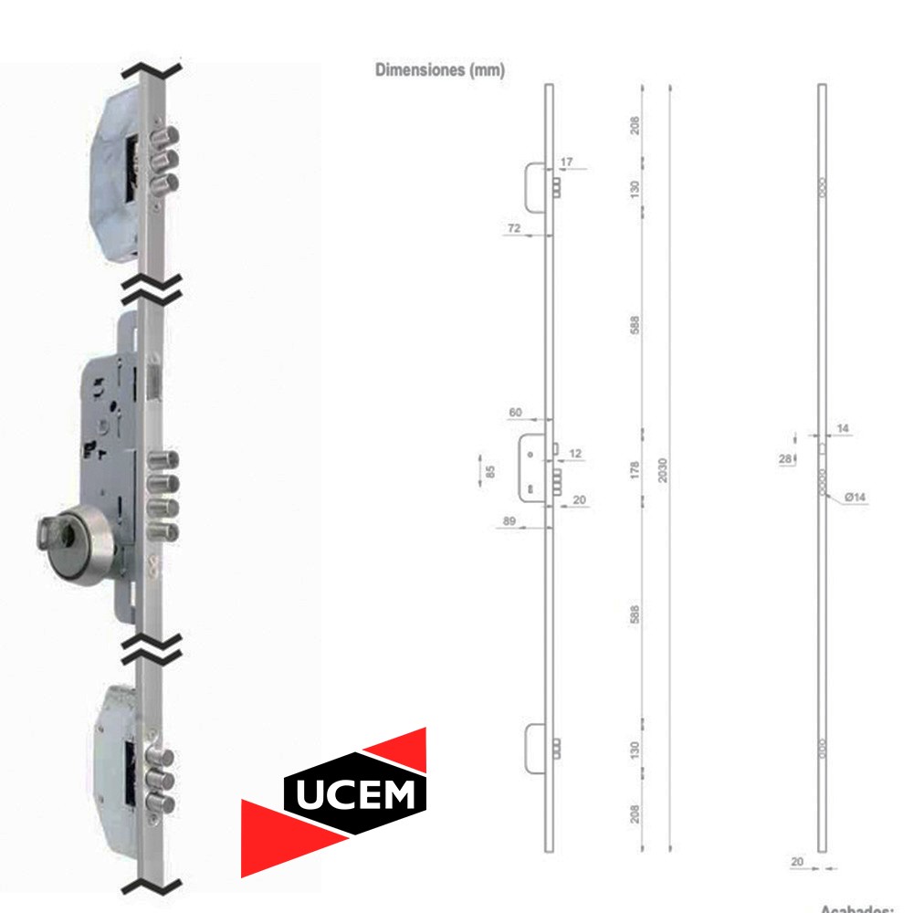 Cerradura Marca UCEM (Española) de Alta Seguridad de 3 puntos de cierre, ideales para puertas de Madera. Incluye escudo protector Anti Taladro, cilindro de seguridad con 5 llaves multipunto y manilla interior colonial acabado negro.